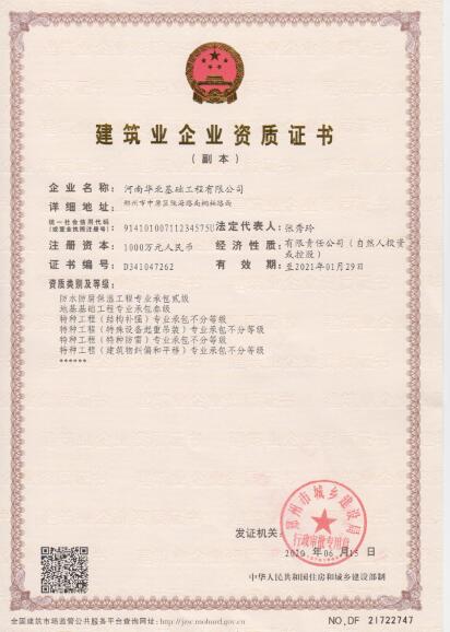 河南華北基礎工程有限公司成立于1998年,由華北地勘工程公司改制而來。公司下設地基基礎公司、定向技術服務公司、新產品研發中心三個單位。設立綜合管理部、生產運行部、安全環保部、經營財務部、商務合約部五個職能部門。